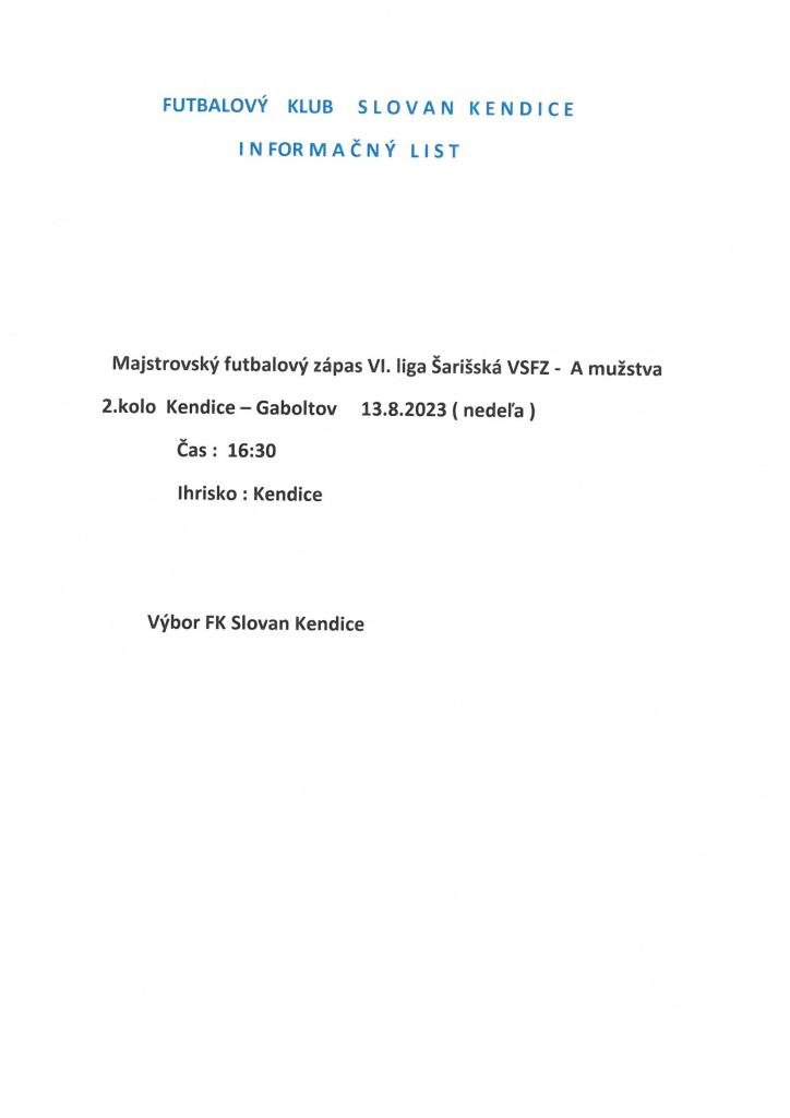 Informačný list FK Slovan Kendice