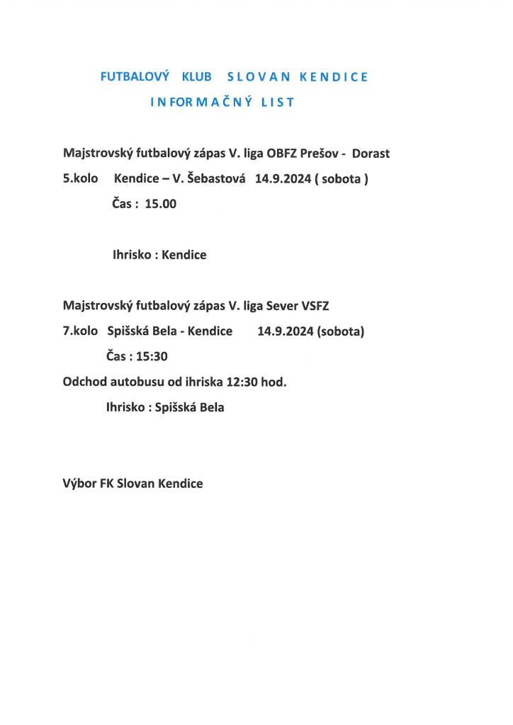 Informačný list FK Slovan Kendice