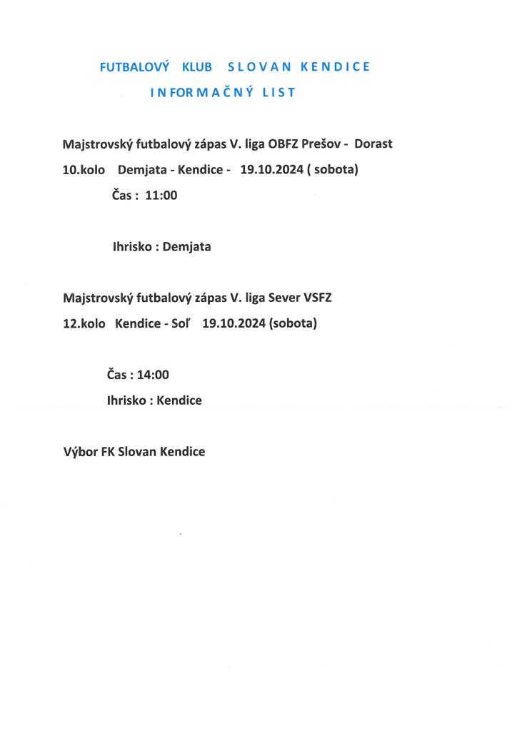 Informačný list - FK Slovan Kendice