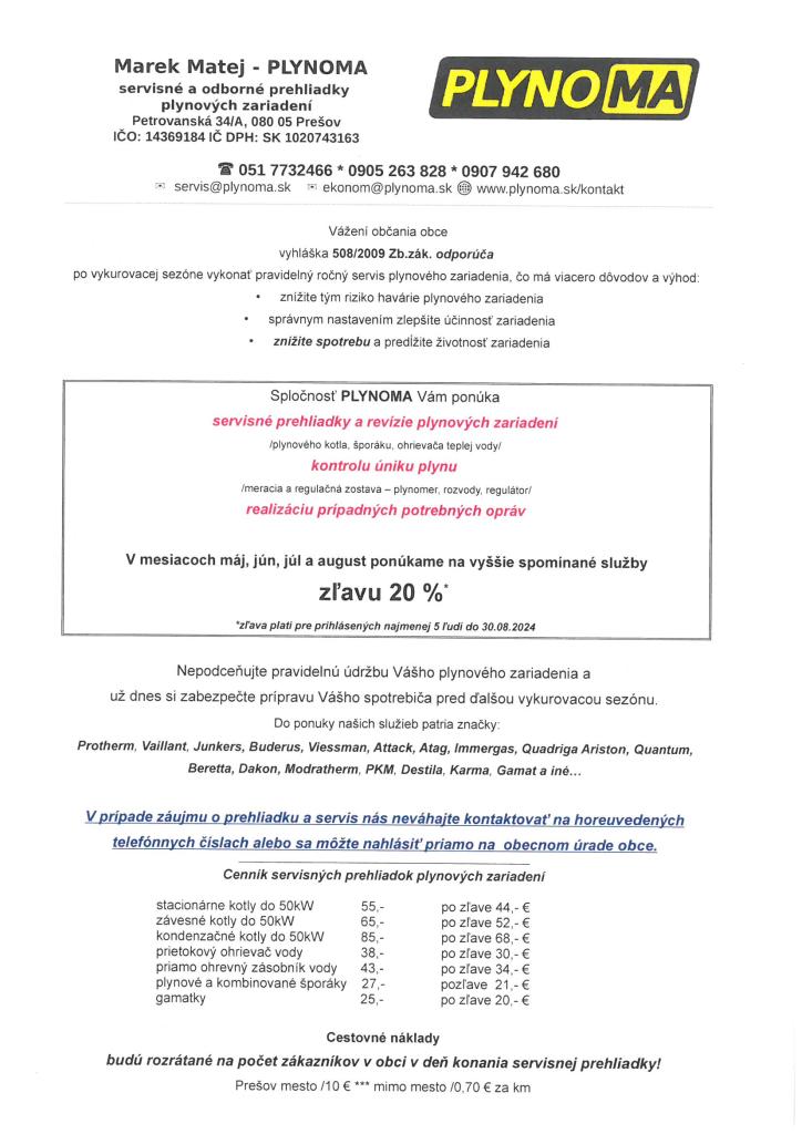Spoločnosť PLYNOMA Vám ponúka servisné prehliadky a revízie plynových zariadení