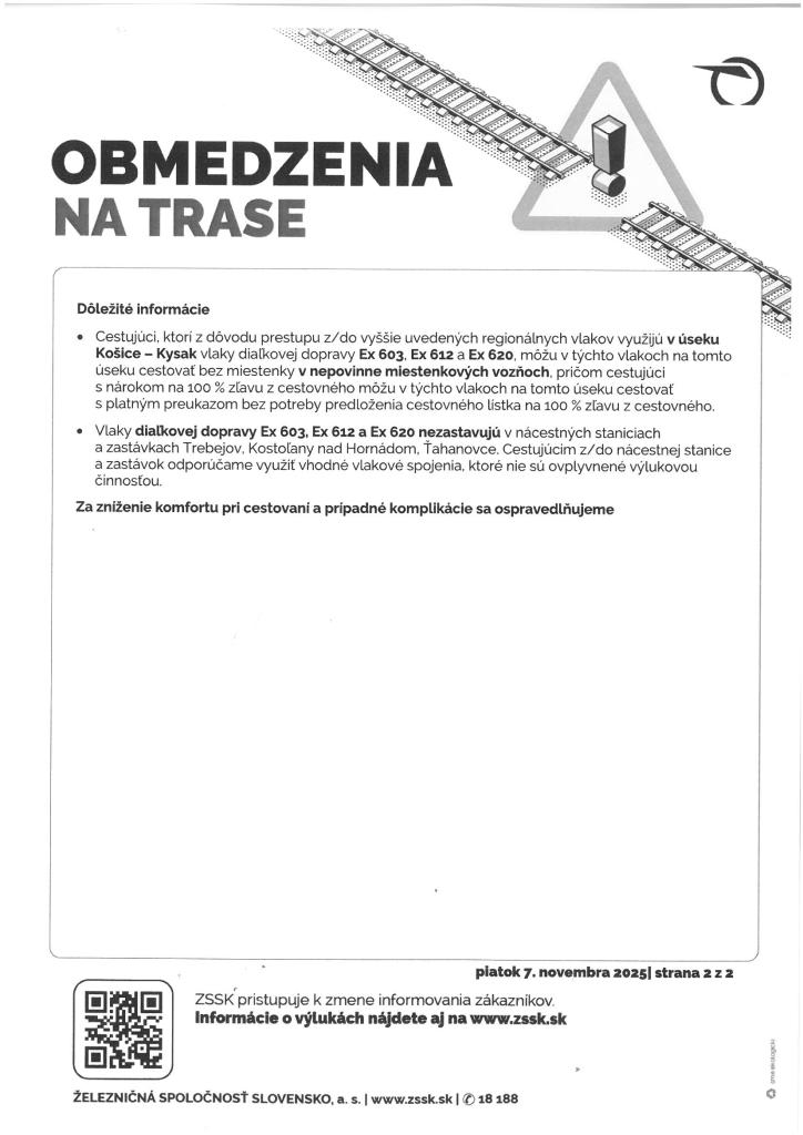 Obmedzenia na trase Košice - Kysak 11.11. - 13.11.2025