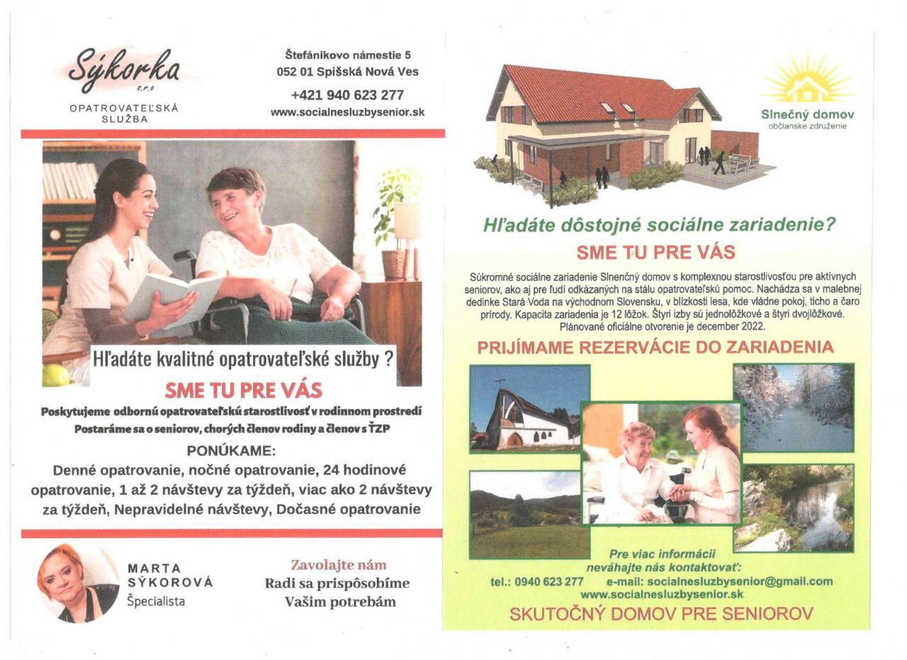Skutočný domov pre seniorov - Sýkorka, s.r.o Spišská Nová Ves Ponúka: Denné opatrovanie, nočné opatrovanie, 24 hod. opatrovanie, 1 až 2 návštevy za týždeň, č.t. +421940 623 277
