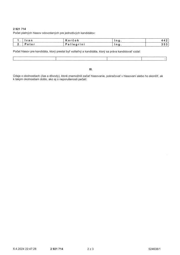 Výsledky volieb prezidenta SR v obci Kendice-II. kolo 6.4.2024
