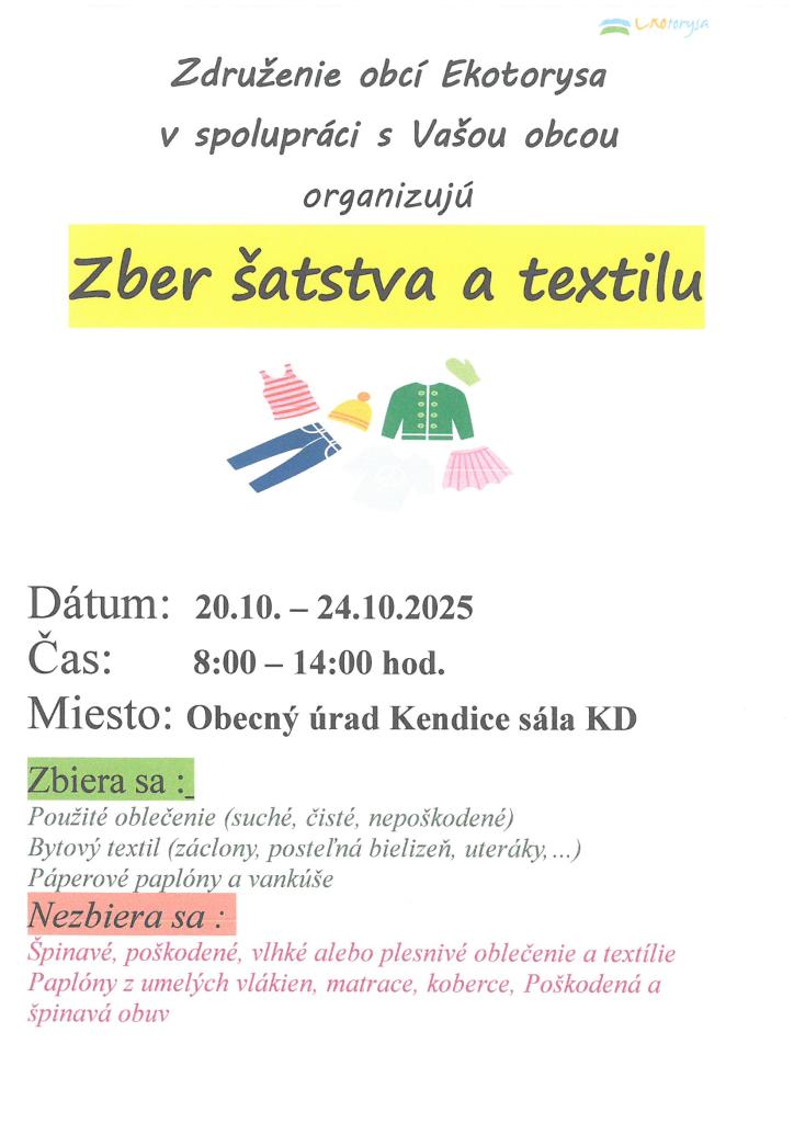 Zber šatstva a textilu v obci Kendice