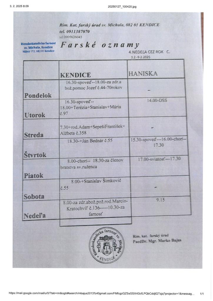 Farské oznamy od 03.02.-09.02.2025