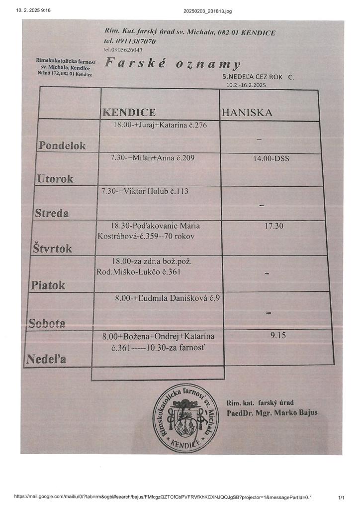 Farské oznamy od 10.2.2025 - 16.2.2025