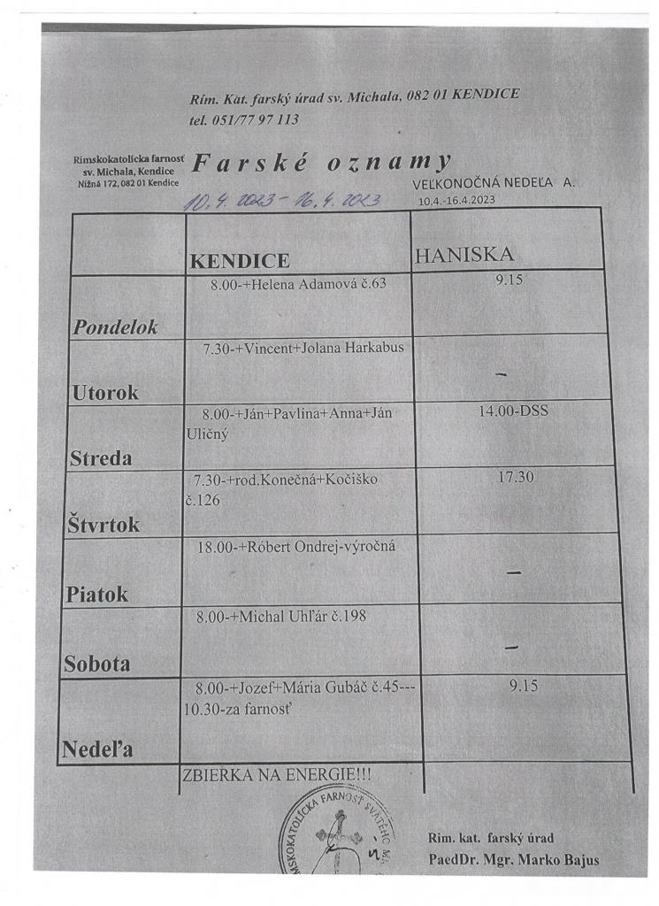 Farské oznamy od 10.4.2023 - 16.4.2023 Veľkonočná nedeľa A