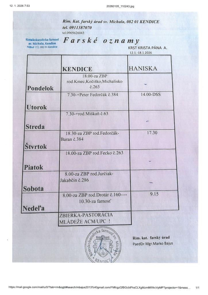 Farské oznamy od 12.1. - 18.1.2026