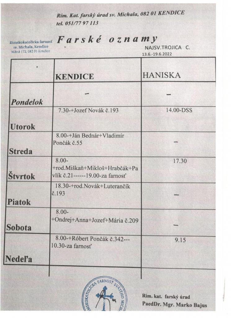 Farské oznamy od 13.6.2022 do 19.6.2022