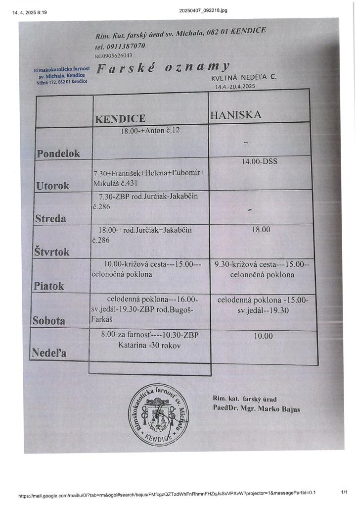 Farské oznamy od 14.4.-20.4.2025