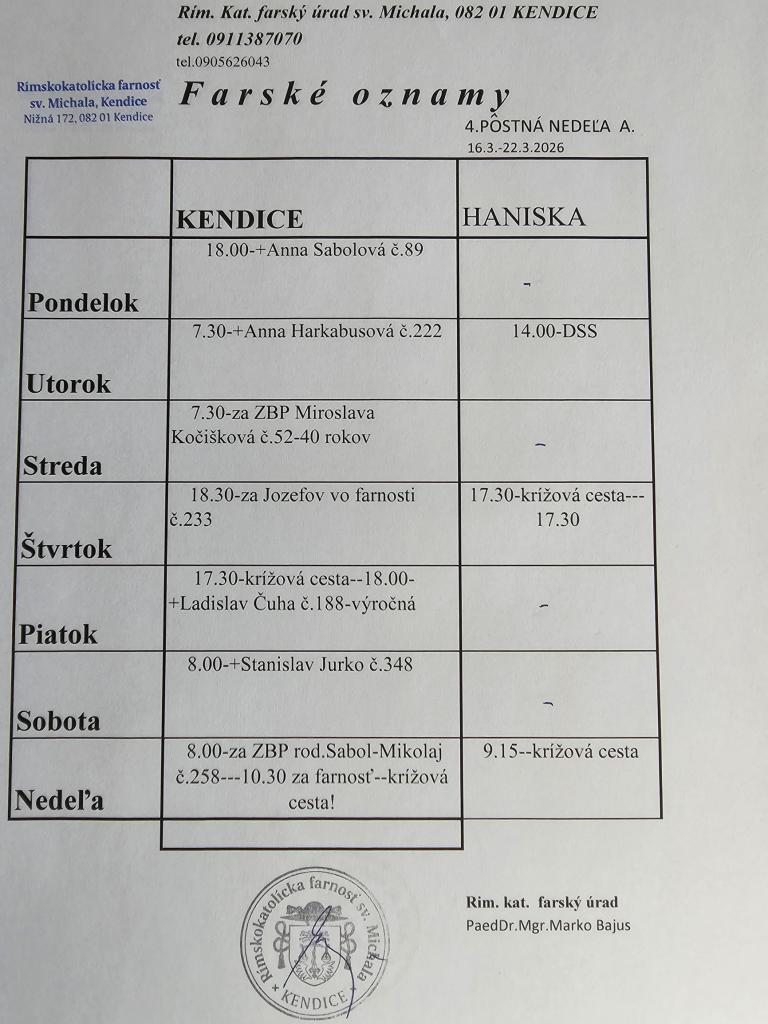 Farské oznamy od 16.3. - 22.3.2026