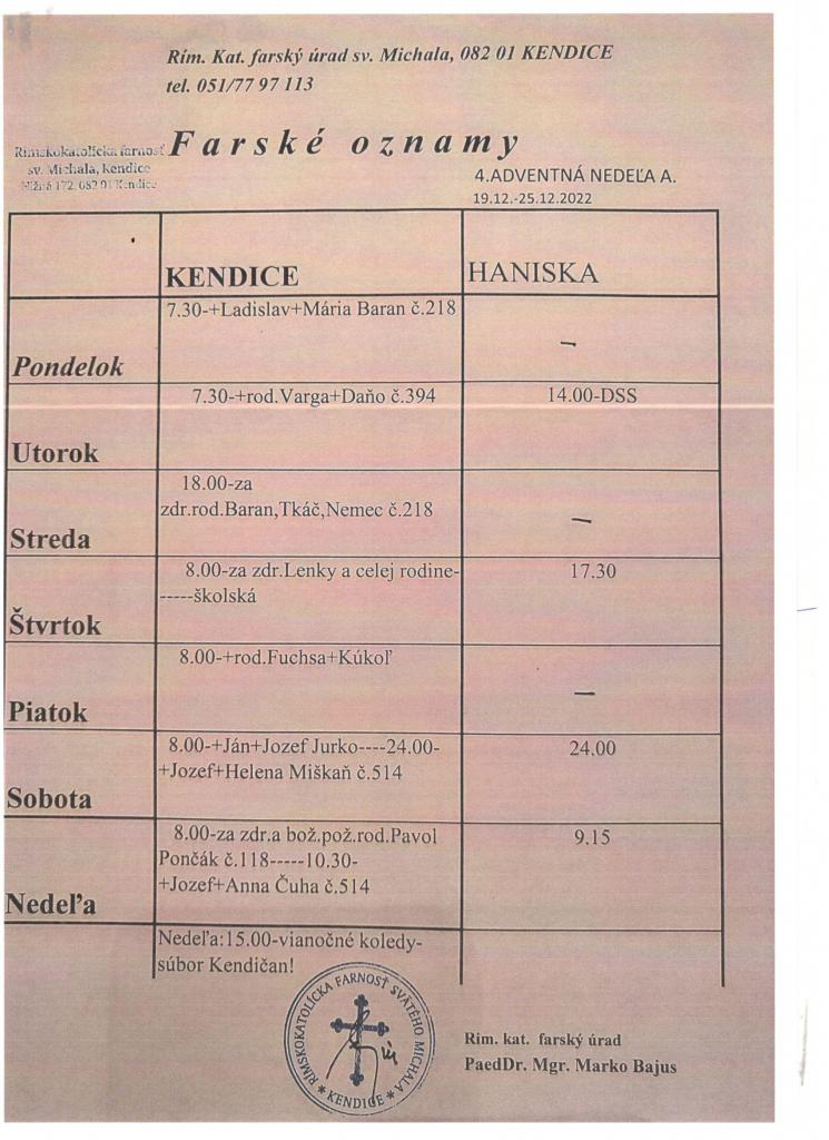 Farské oznamy od 19.12.2022 do 25.12.2022