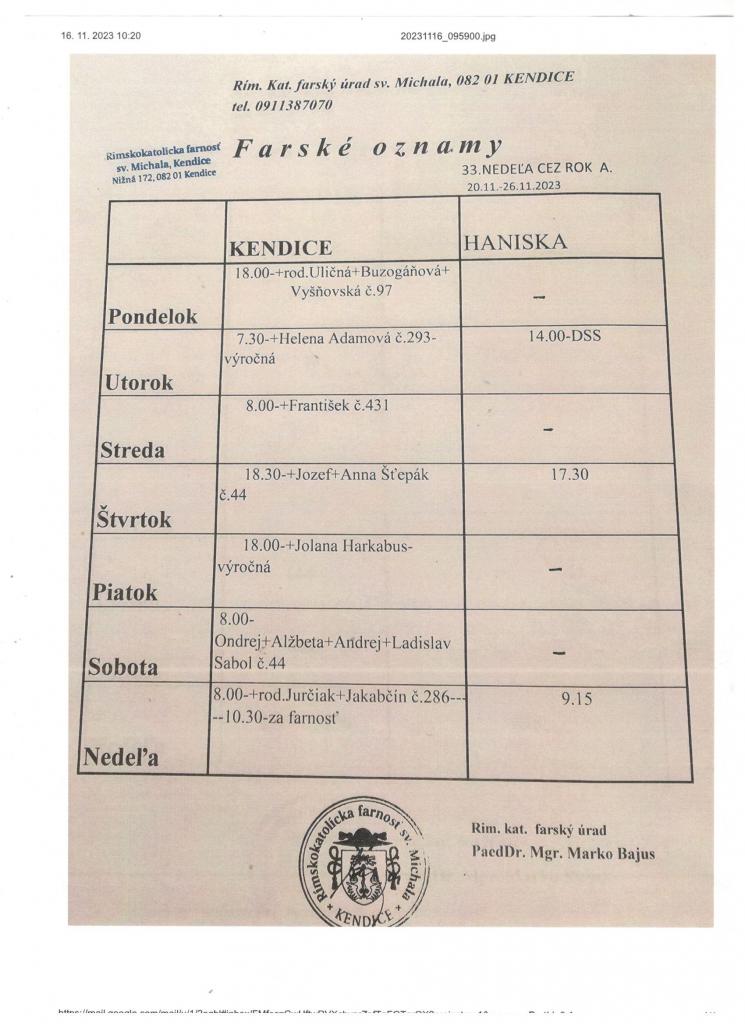 Farské oznamy od 20.11.-26.11.2023 33. nedeľa cez rok A