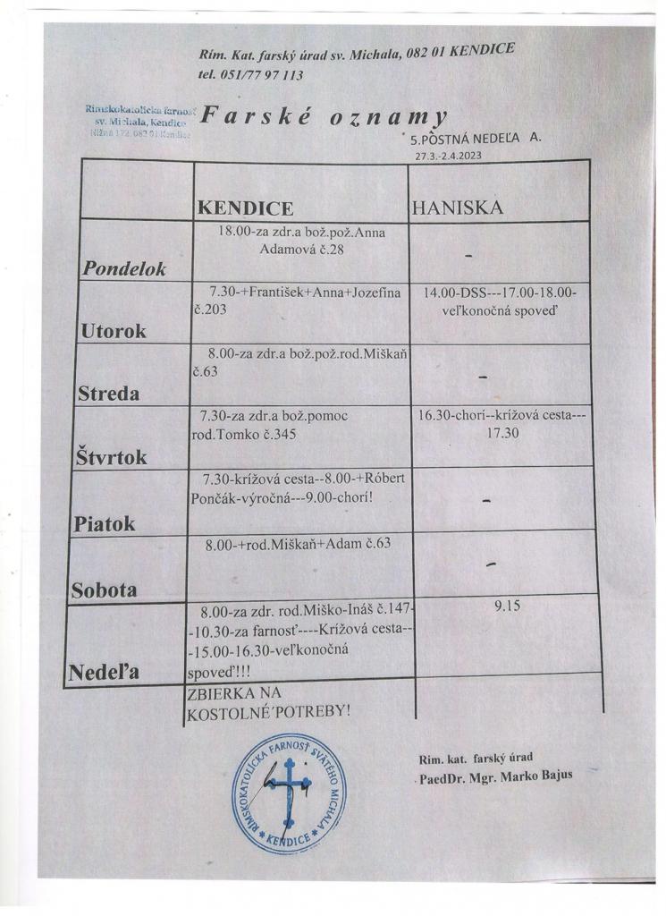 Farské oznamy od 27.3.-2.4.2023 5.pôstna nedeľa A