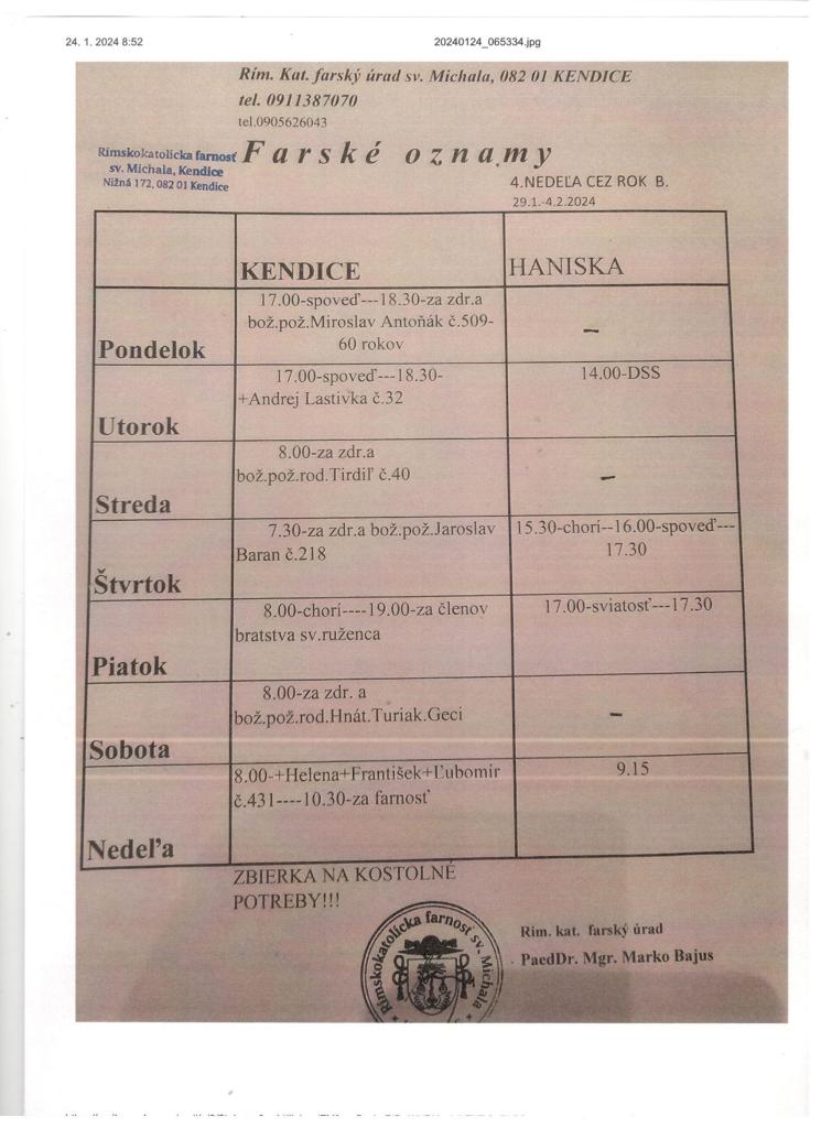 Farské oznamy -4.nedeľa cez rok B od 29.1.-4.2.2024