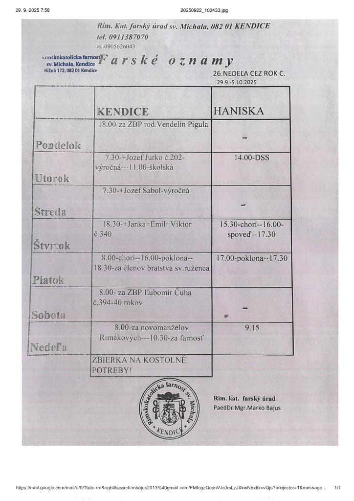 Farské oznamy od 29.9. - 5.10.2025