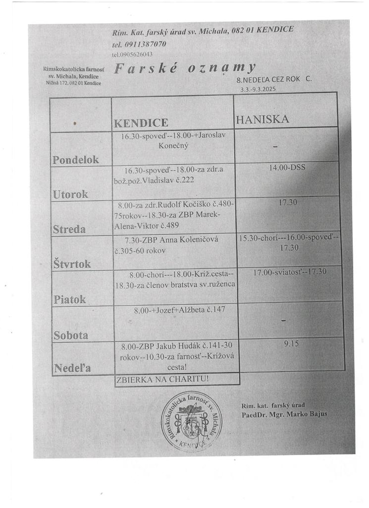 Farské oznamy od 3.3.-9.3.2025 8.nedeľa cez rok C